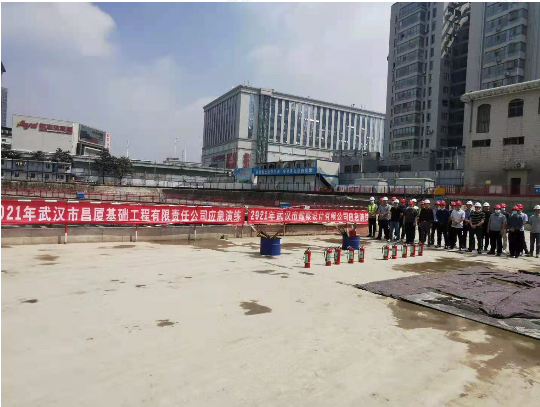 2021年5月8日上午,基礎(chǔ)工程公司漢口客運(yùn)中心項(xiàng)目組織開展2021年度消防應(yīng)急演練,武漢市勘察設(shè)計(jì)有限公司副總經(jīng)理兼總工程師官善友,副總經(jīng)理蔣濤,綜合部(黨群工作部)、技術(shù)質(zhì)量安全部主要負(fù)責(zé)人,各生產(chǎn)部門相關(guān)負(fù)責(zé)人進(jìn)行了觀摩演練。