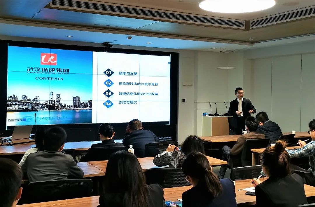 10月27日,公司總經(jīng)理施木俊應(yīng)邀作為授課講師在武漢城建集團(tuán)舉辦的第25期城建大講堂中授課。本次授課以“勘測(cè)與信息化新技術(shù)助力城建集團(tuán)高質(zhì)量、跨越式發(fā)展”為題,系統(tǒng)闡述了公司勘測(cè)與信息化技術(shù)在助力城市建設(shè)、更新,契合集團(tuán)設(shè)計(jì)咨詢板塊業(yè)務(wù)發(fā)展中的支撐作用。城建集團(tuán)總部各部門及所屬單位共計(jì)近50人參與交流和現(xiàn)場(chǎng)互動(dòng)。