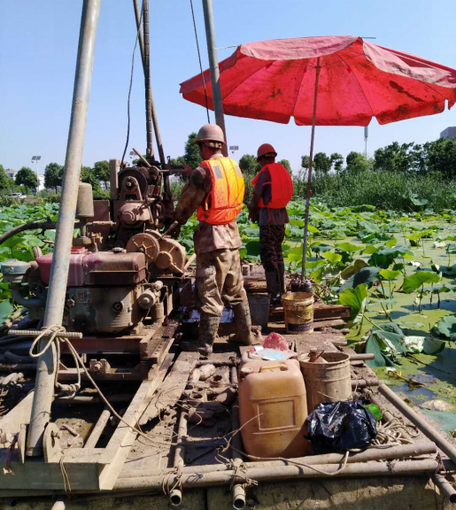 本工程任務(wù)重,勘探工作量大,開工前項(xiàng)目負(fù)責(zé)人對(duì)現(xiàn)場鉆探人員進(jìn)行了技術(shù)交底、環(huán)安教育及思想工作。勘察期間正值持續(xù)高溫天氣,給外業(yè)工作帶來了巨大挑戰(zhàn),但工作過程中項(xiàng)目成員及鉆探人員吃苦耐勞、堅(jiān)守崗位,加班加點(diǎn),保證外業(yè)進(jìn)度的同時(shí),也不懈怠安全生產(chǎn)及質(zhì)量把控,使得勘察工作有條不紊的進(jìn)行。